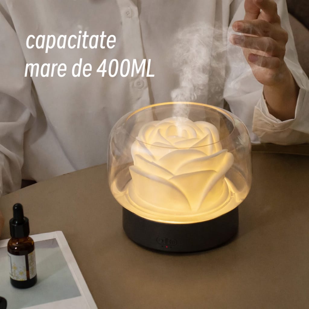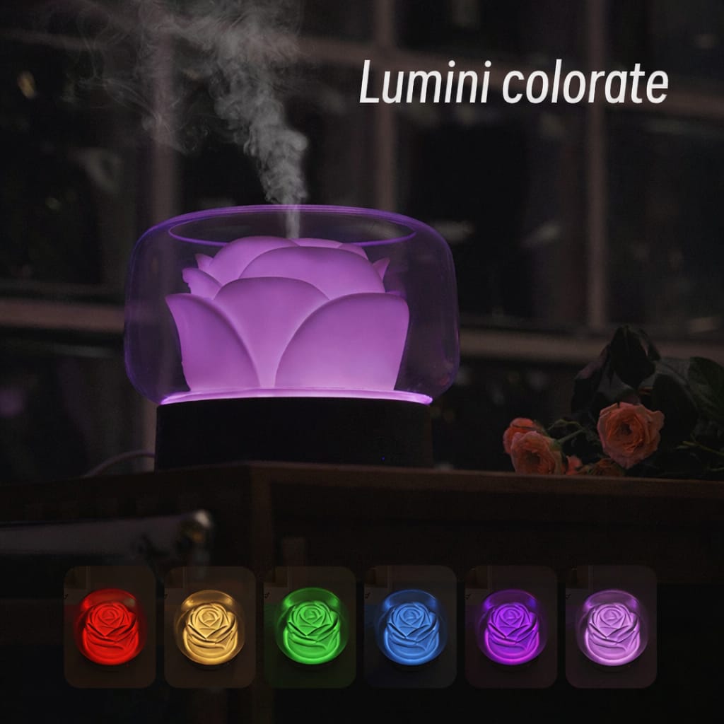 Adaugă un strop de eleganță și relaxare în casa ta cu acest difuzor de aromaterapie in formă de floare. Perfect pentru a crea atmosferă plăcută și a îmbunătăţi calitatea aerului, difuzorul combină funcția de umidificare cu cea de iluminare ambientală.